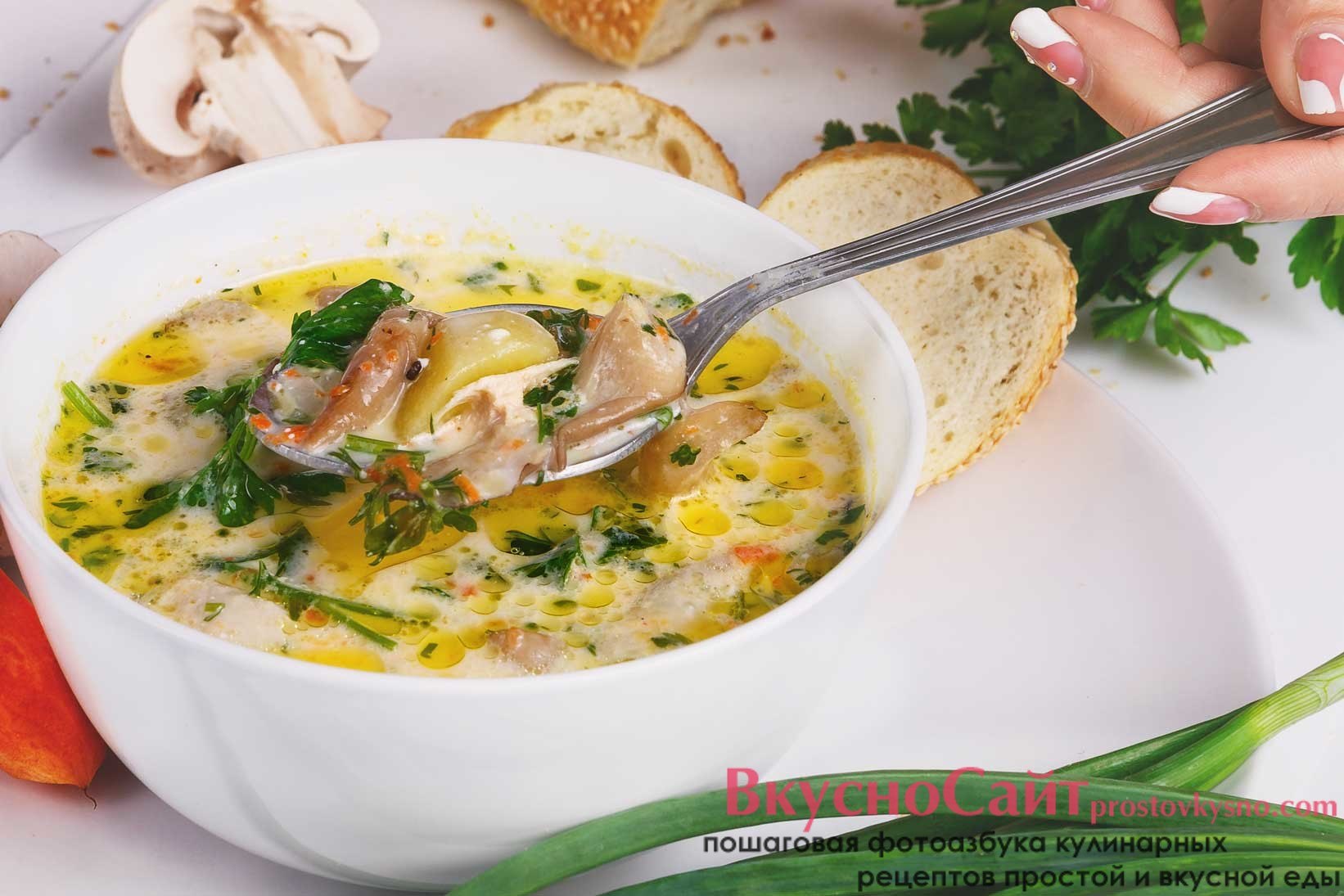 Суп с плавленным сыром и курицей и грибами