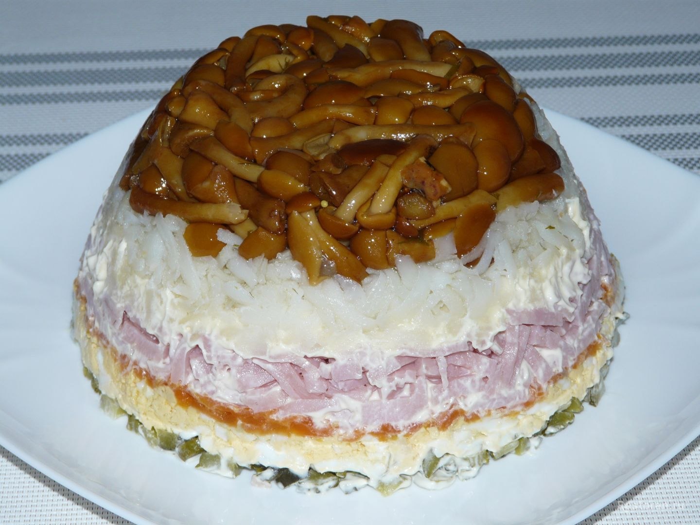 Салат Лесная Полянка с опятами и ветчиной