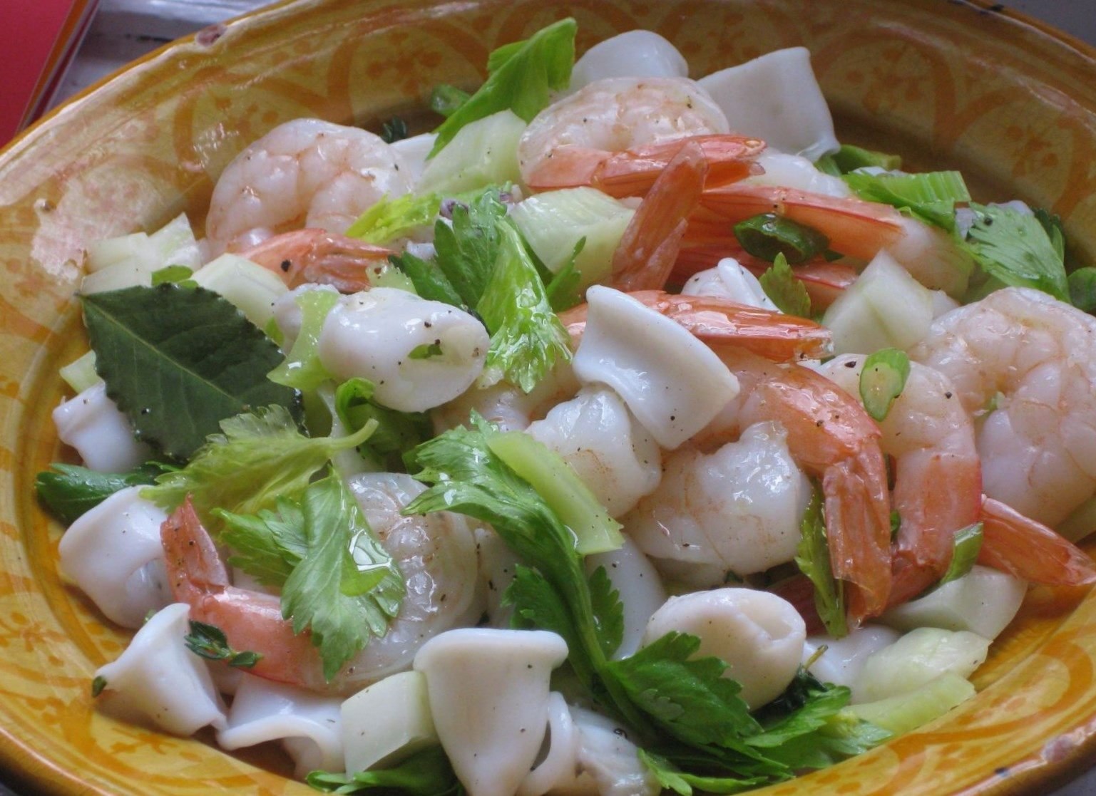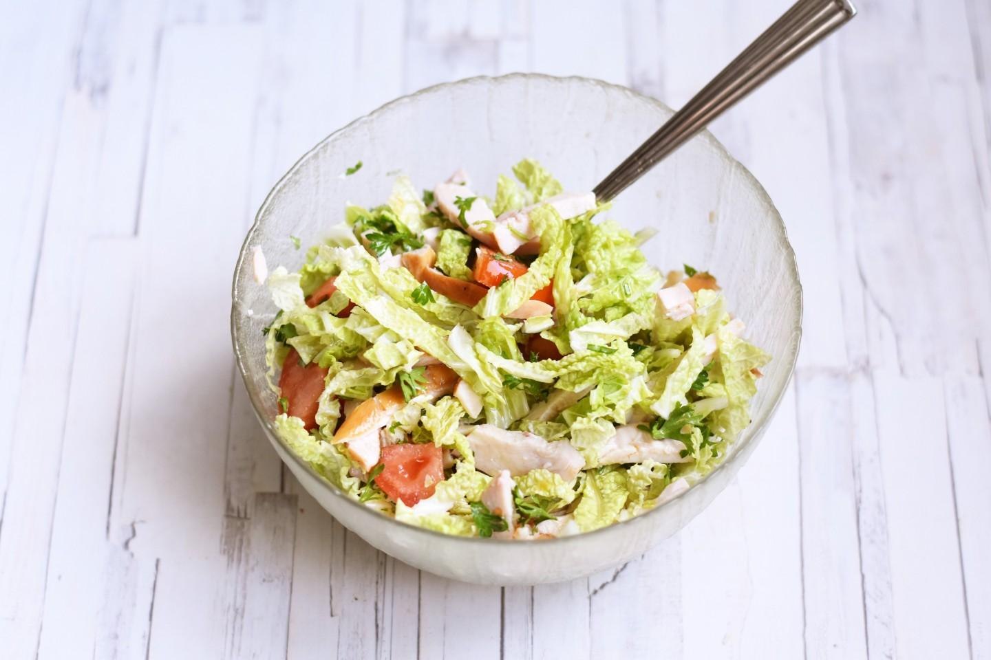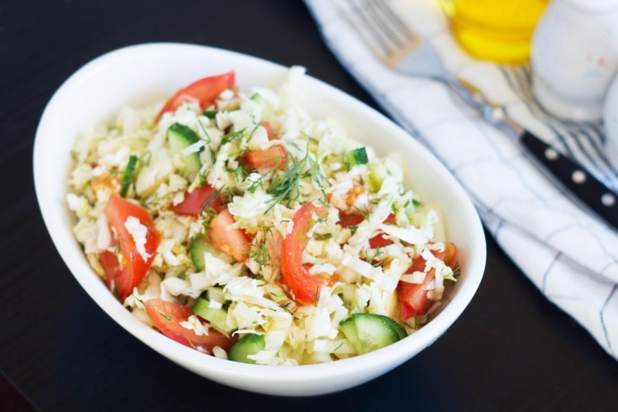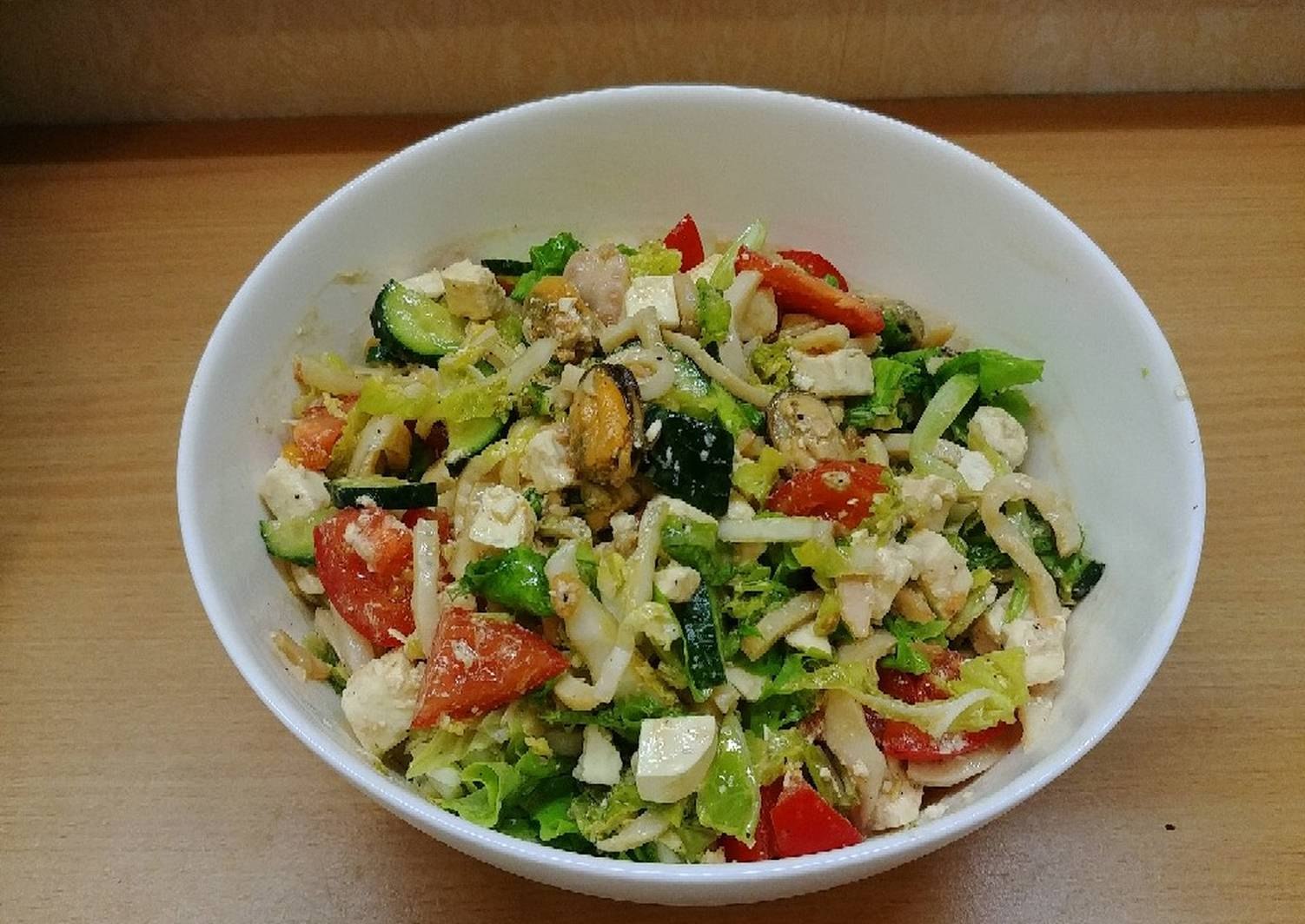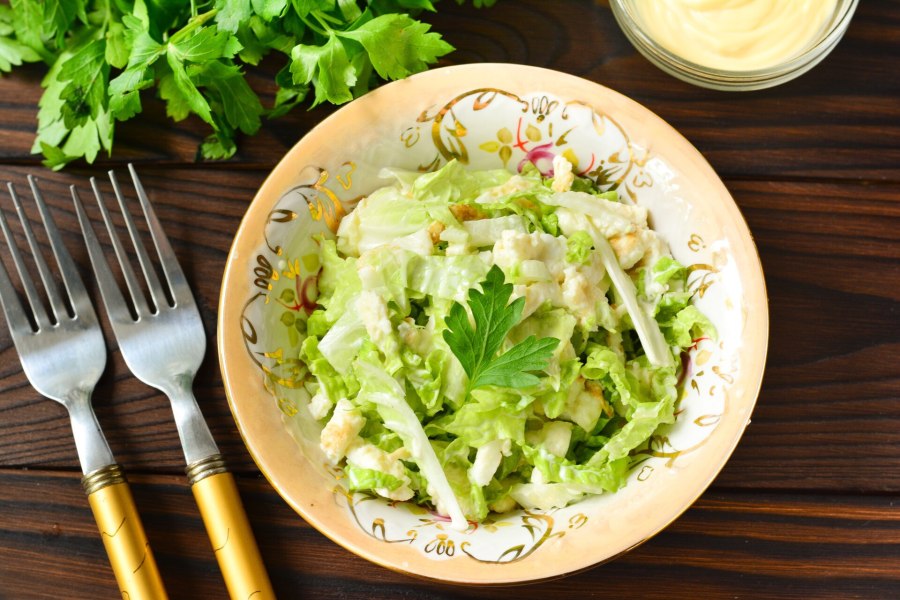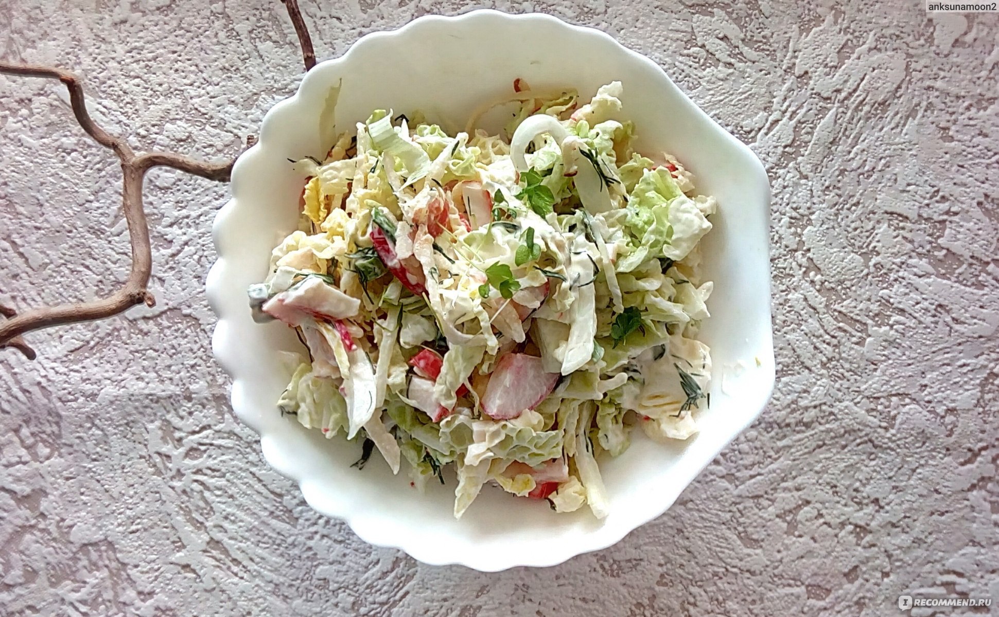 Салат из пекинской капусты с креветками гранатом, ананасом