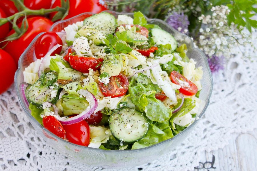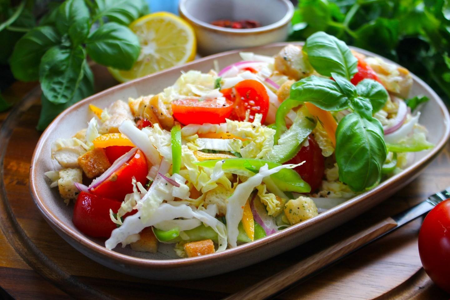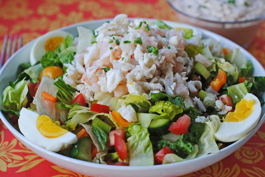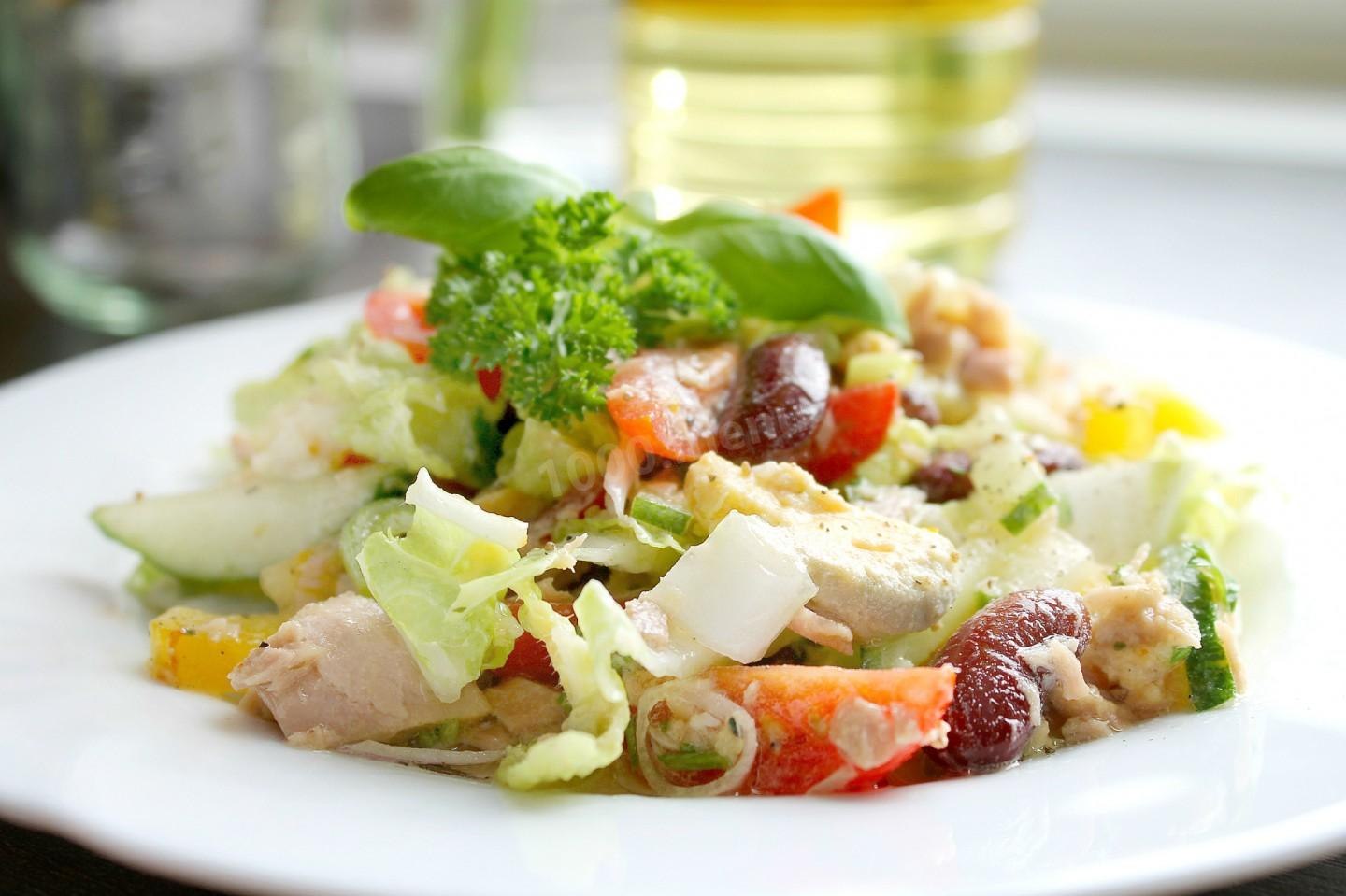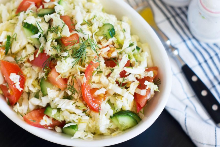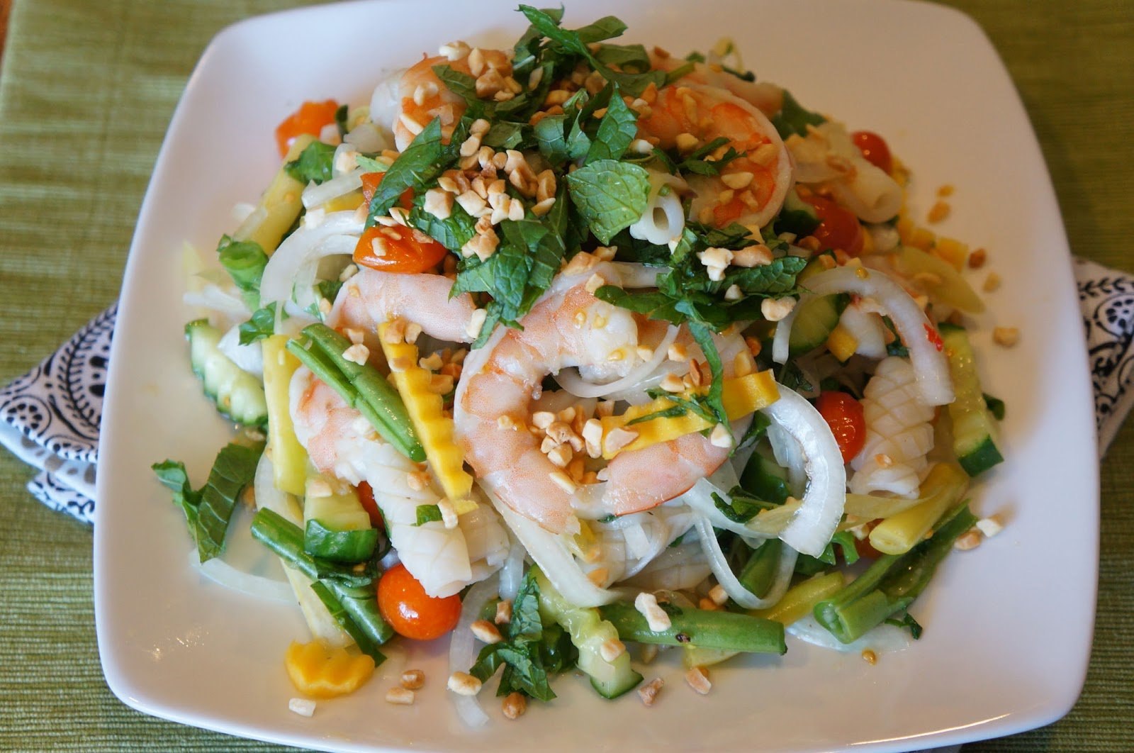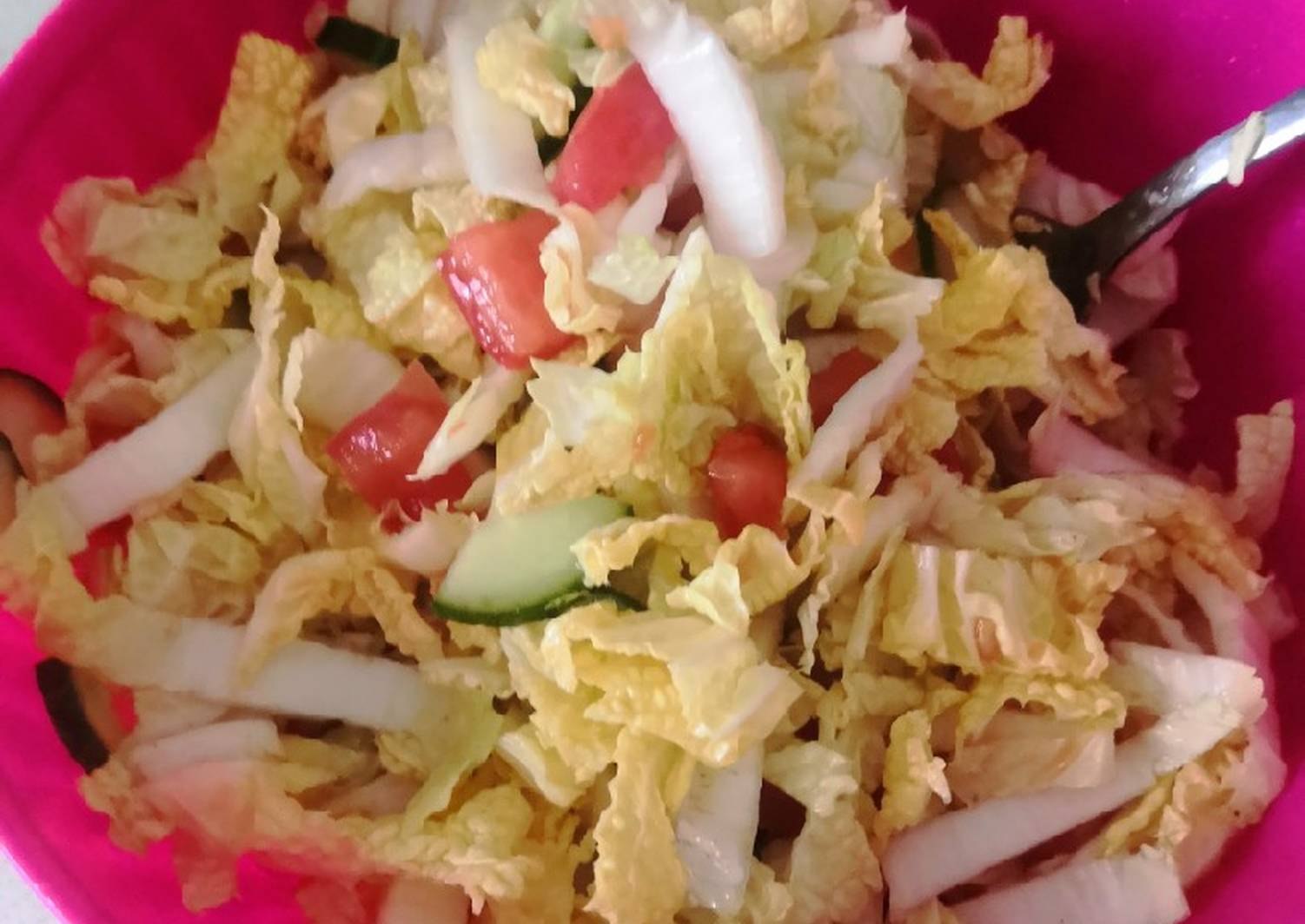 Салат из пекинской капусты с креветками гранатом, ананасом