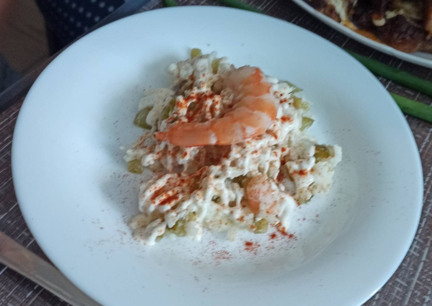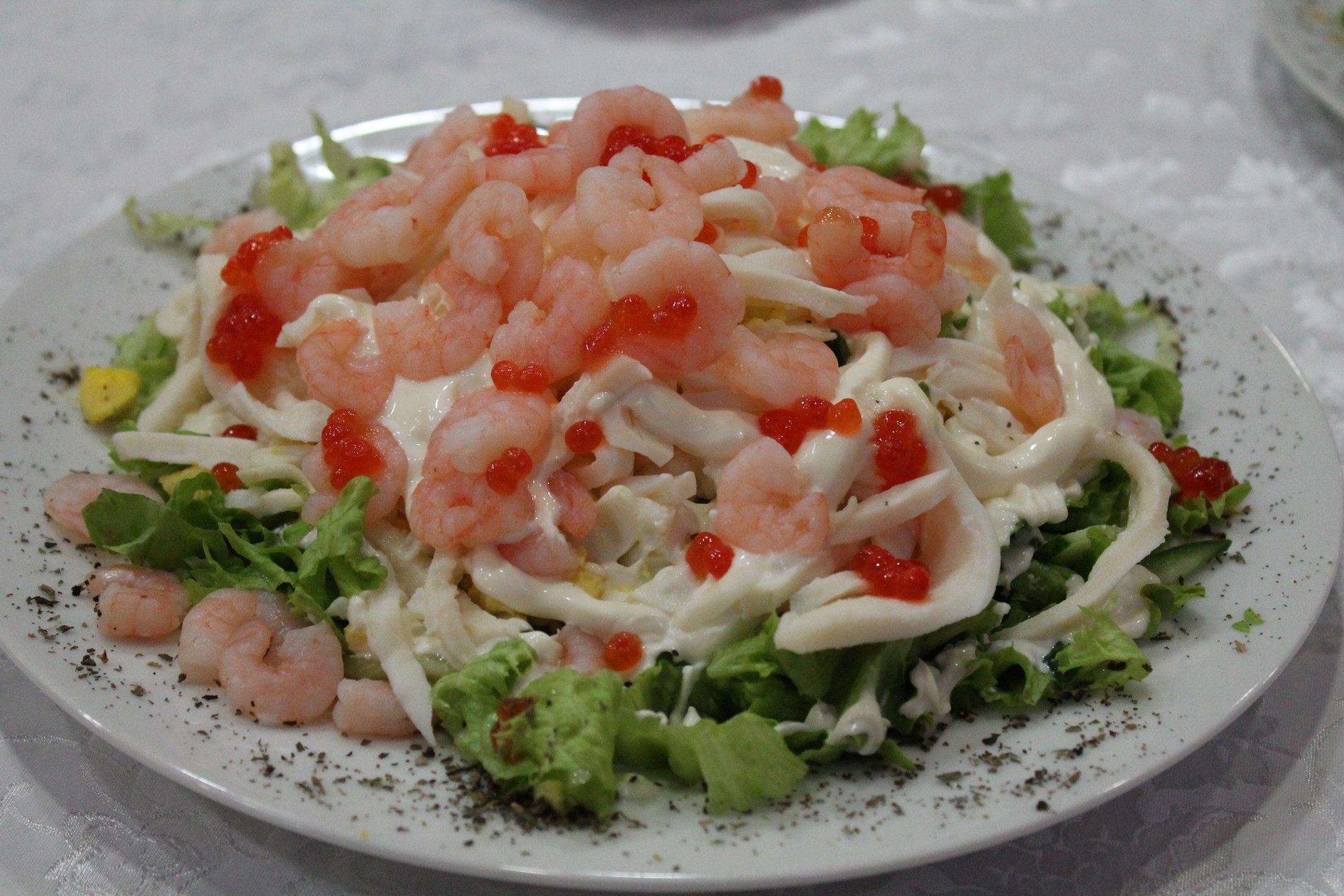 Салат украшенный креветками