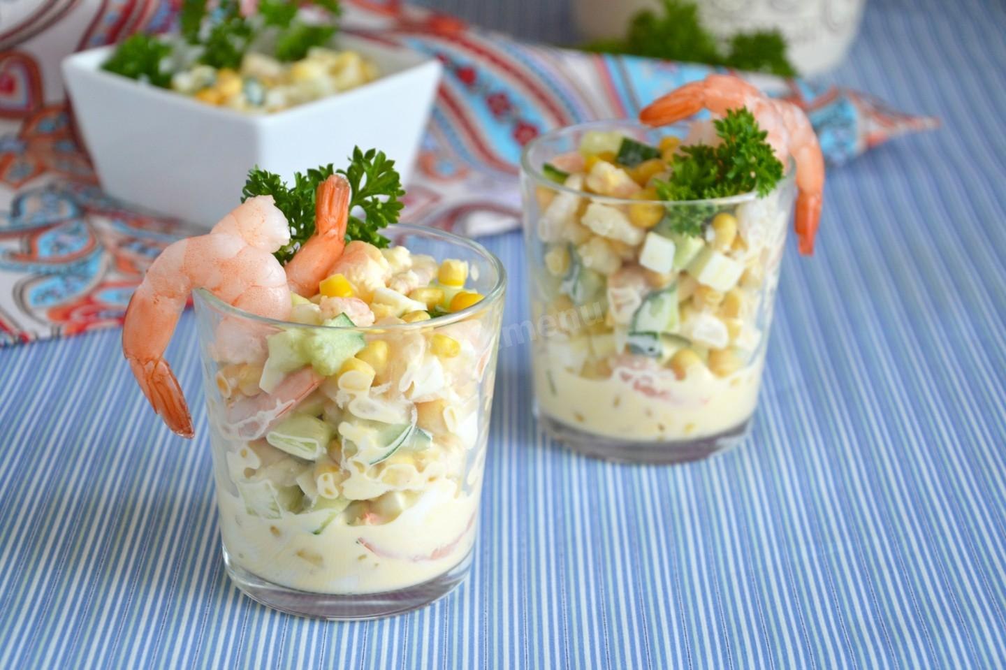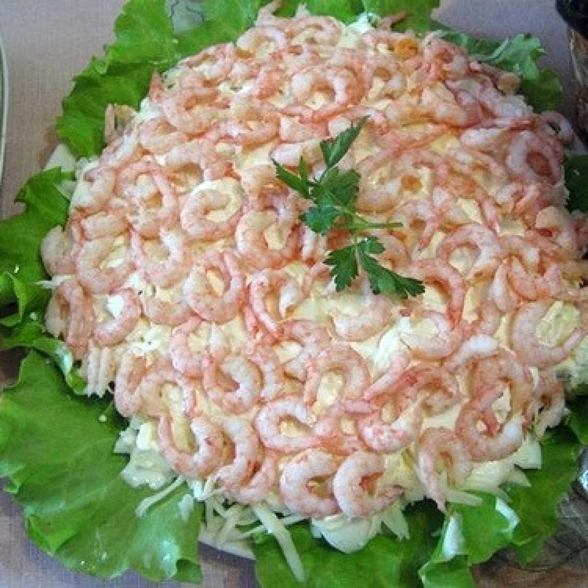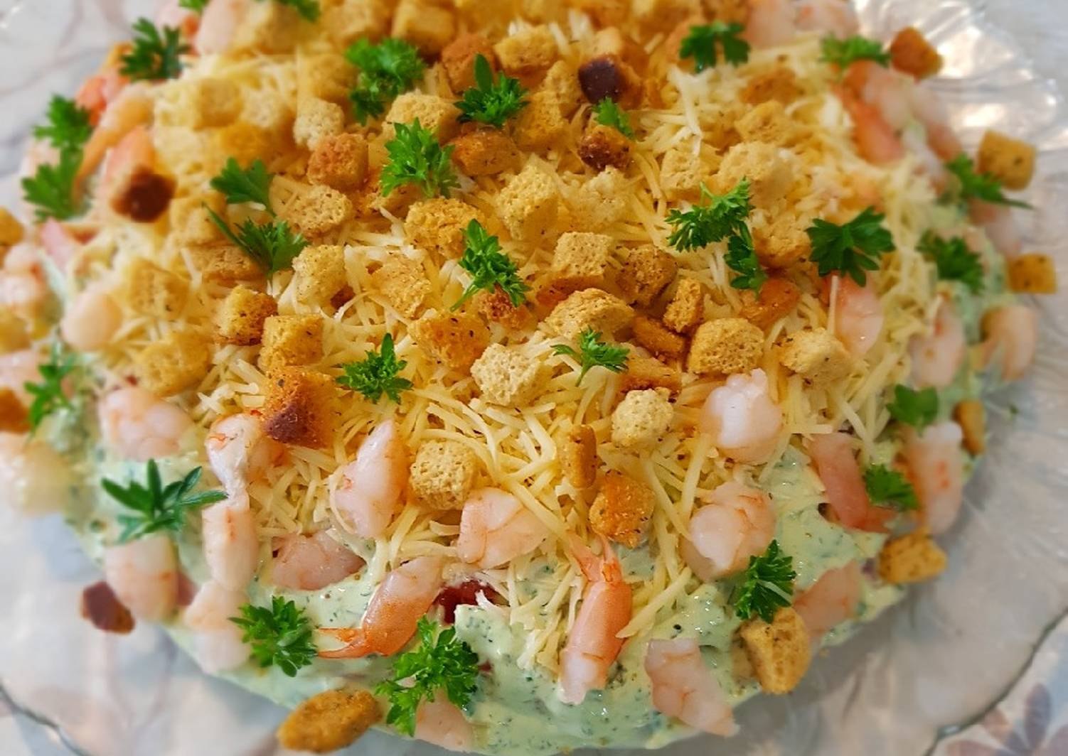 Слоеный салат с креветками
