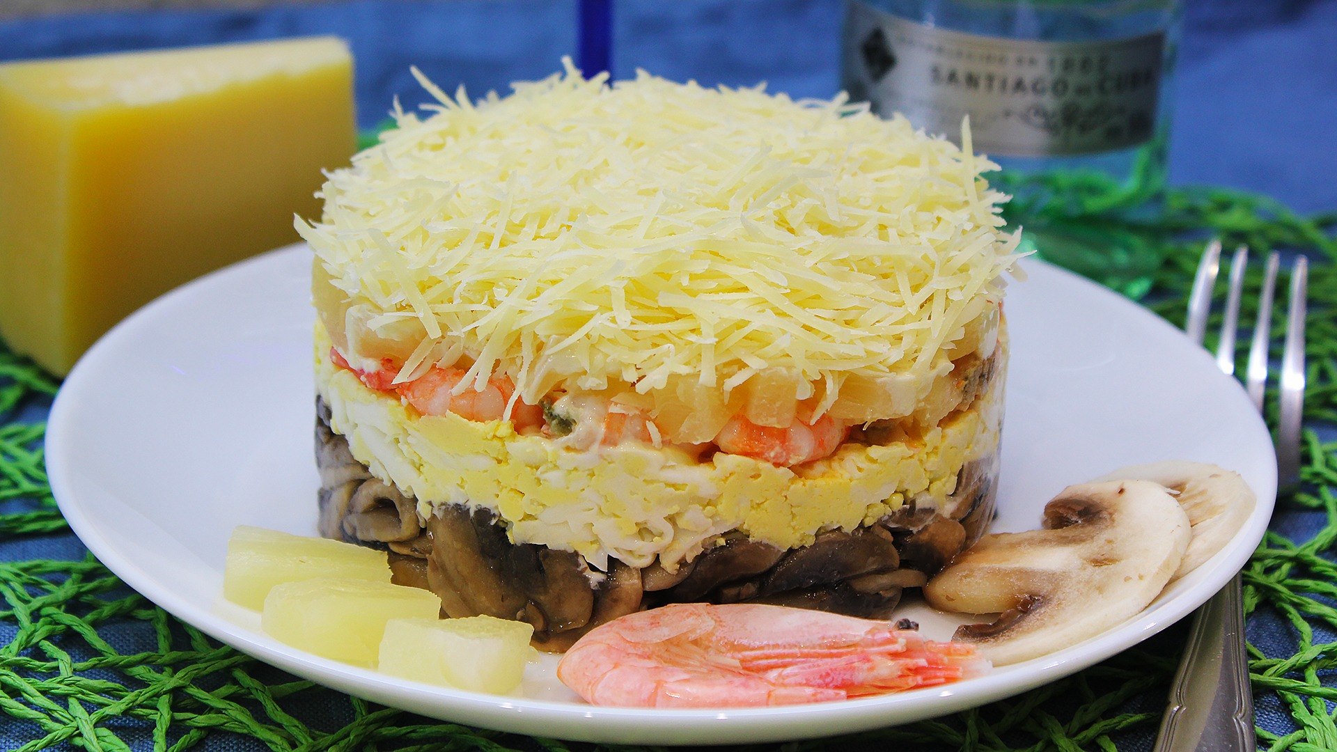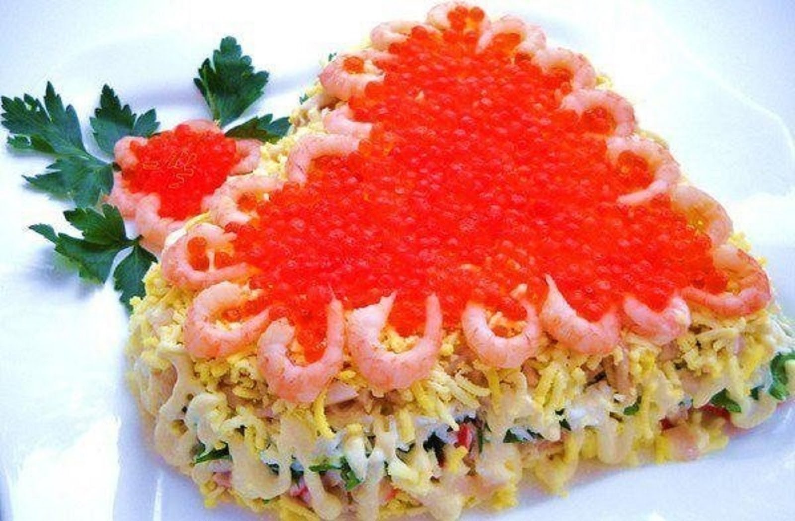Салат с креветками нежность слоеный