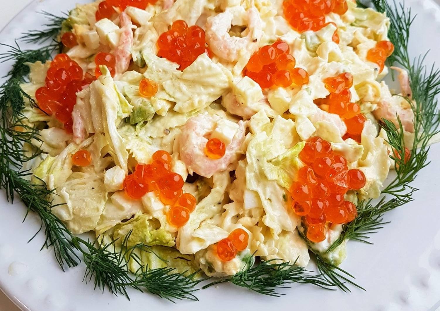 Салат с креветками и икрой