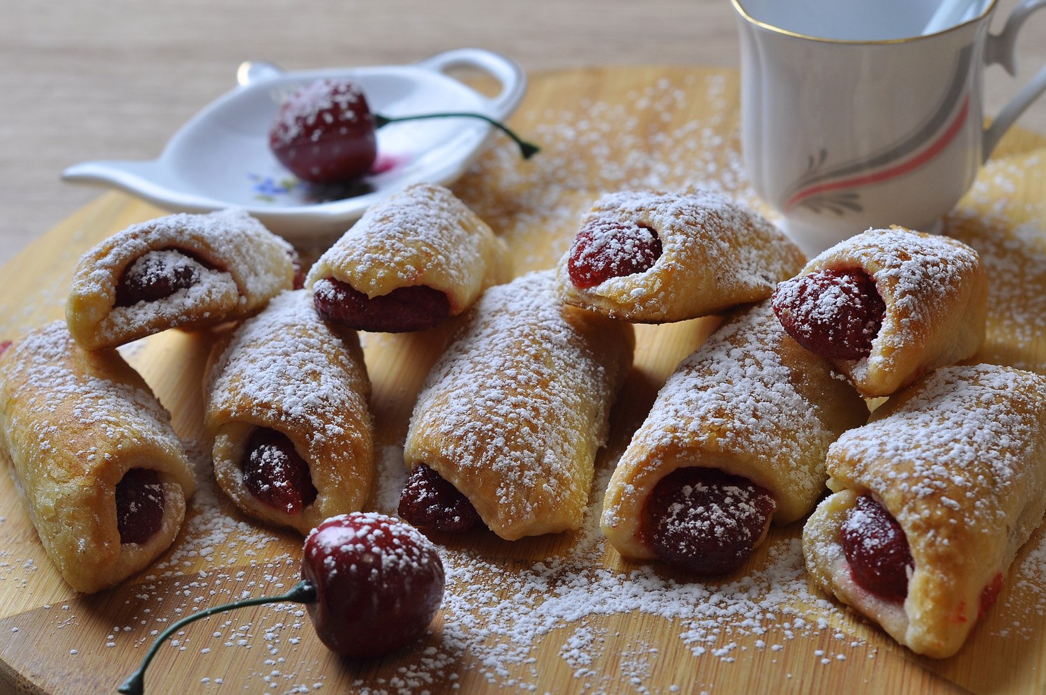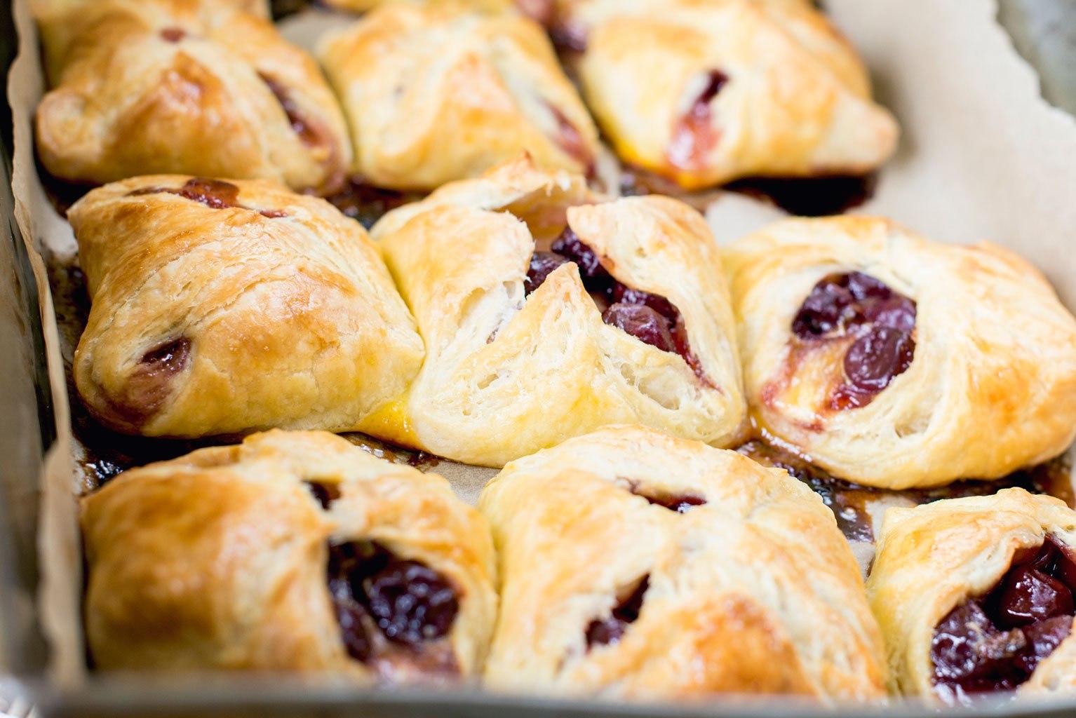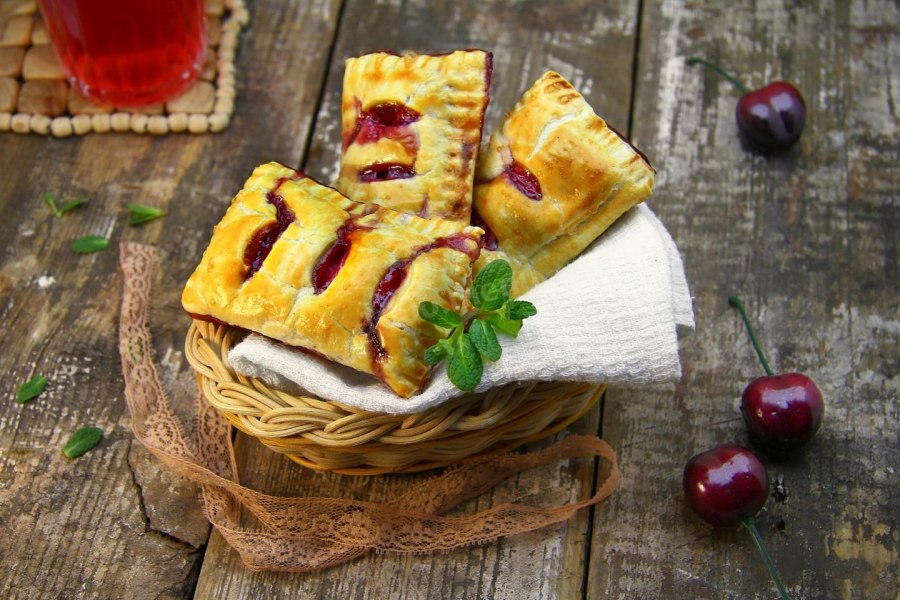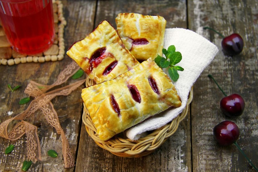 Булочки с вишней из слоеного теста