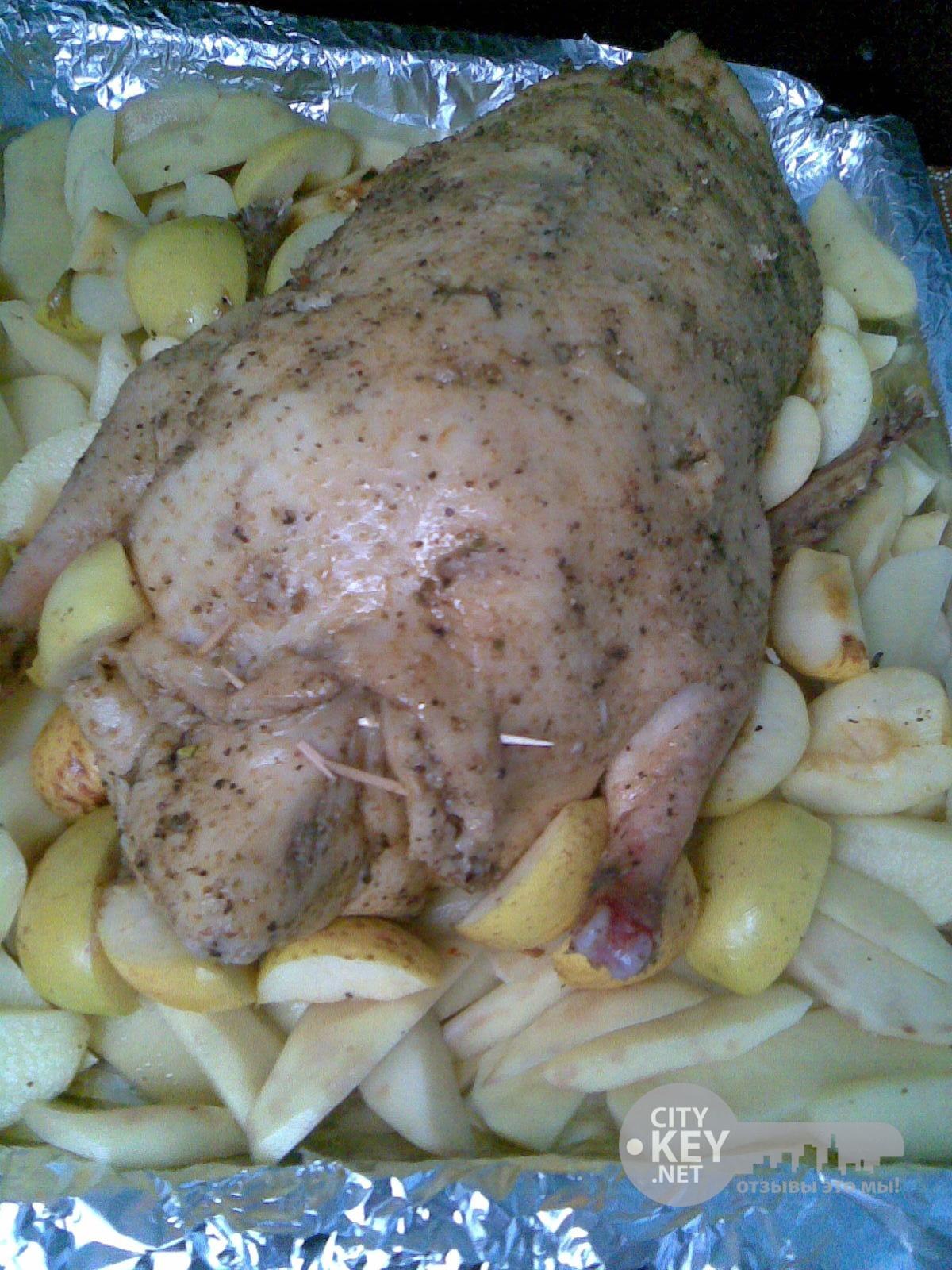 Утка с яблоками в духовке в рукаве с картошкой