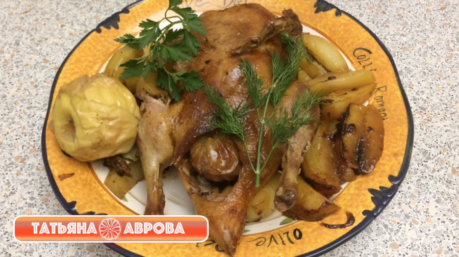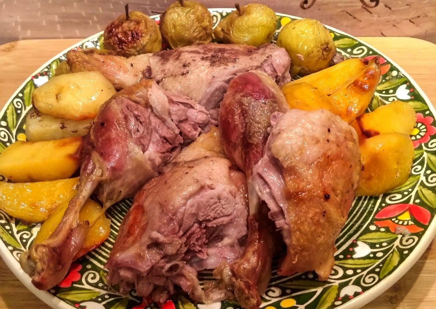 Утка запеченная в духовке с яблоками и картошкой