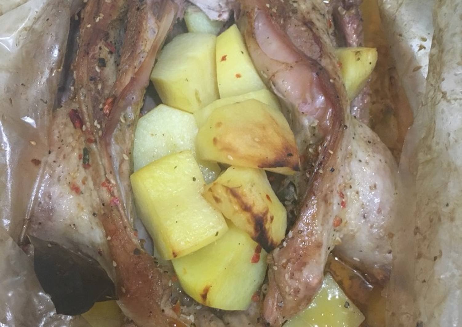 Куриные окорочка с картошкой в рукаве