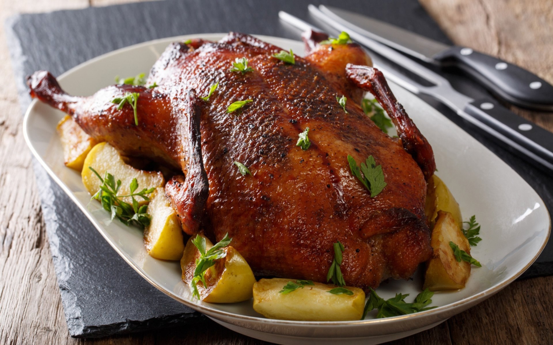 Утка фаршированная яблоками