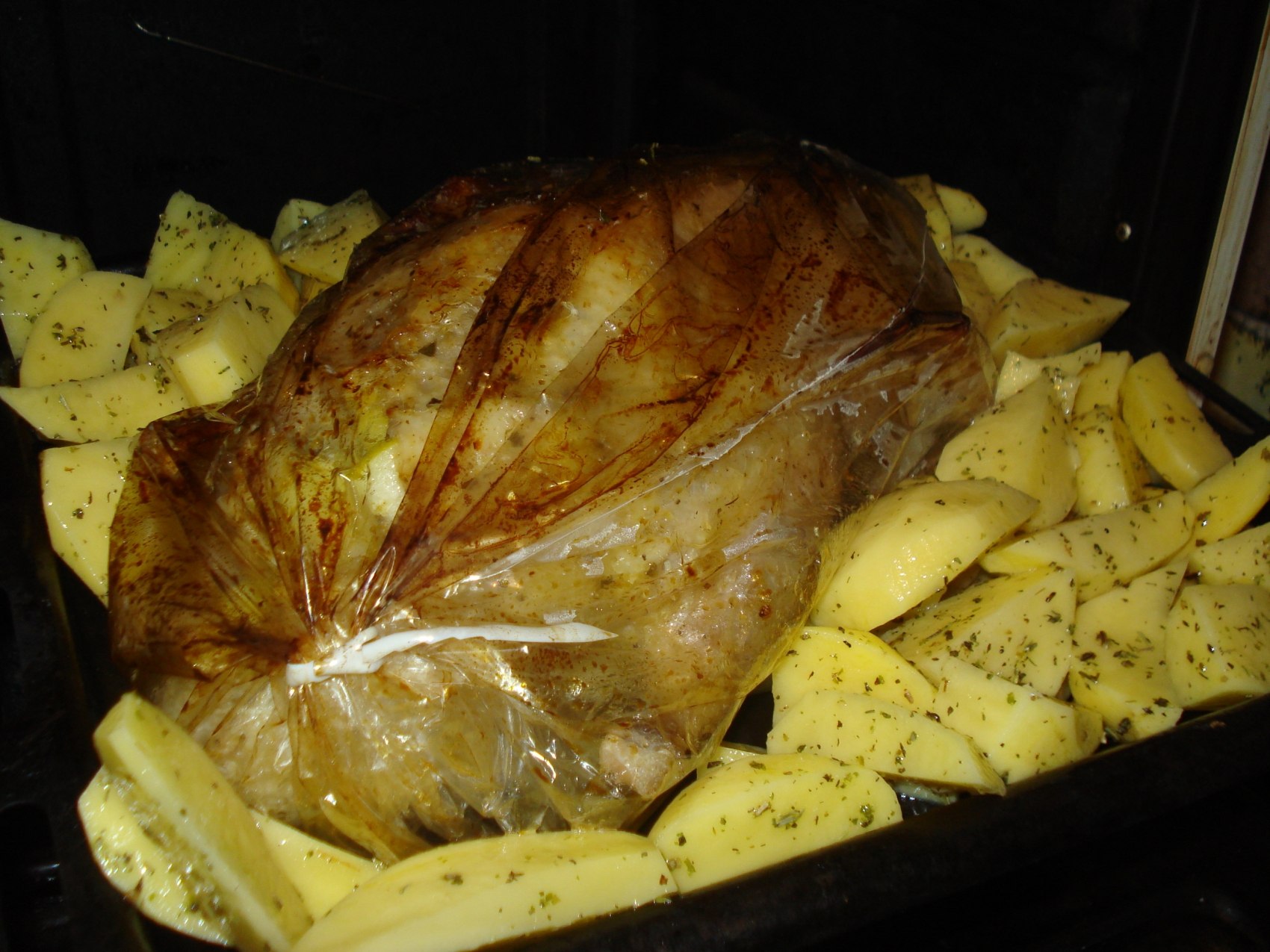 Утка в рукаве с картошкой