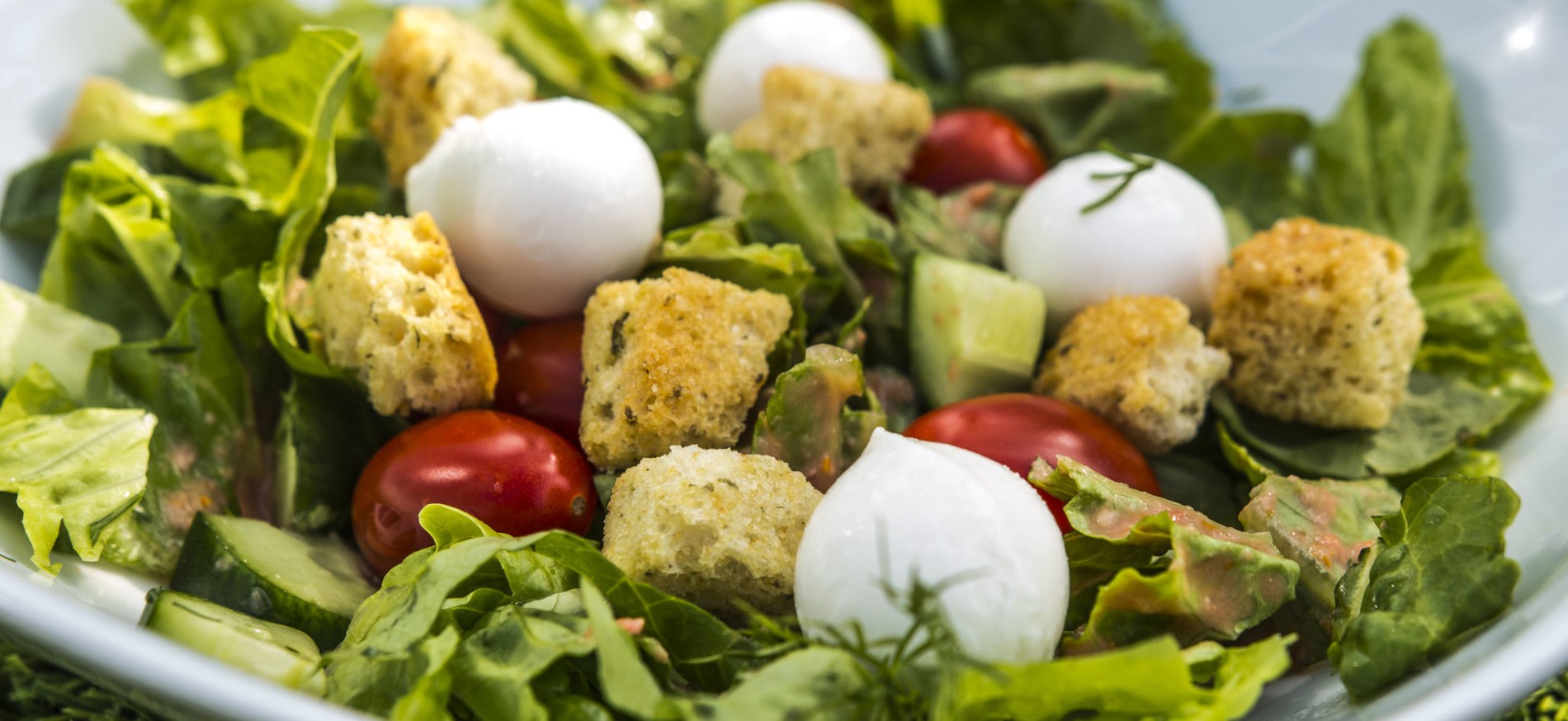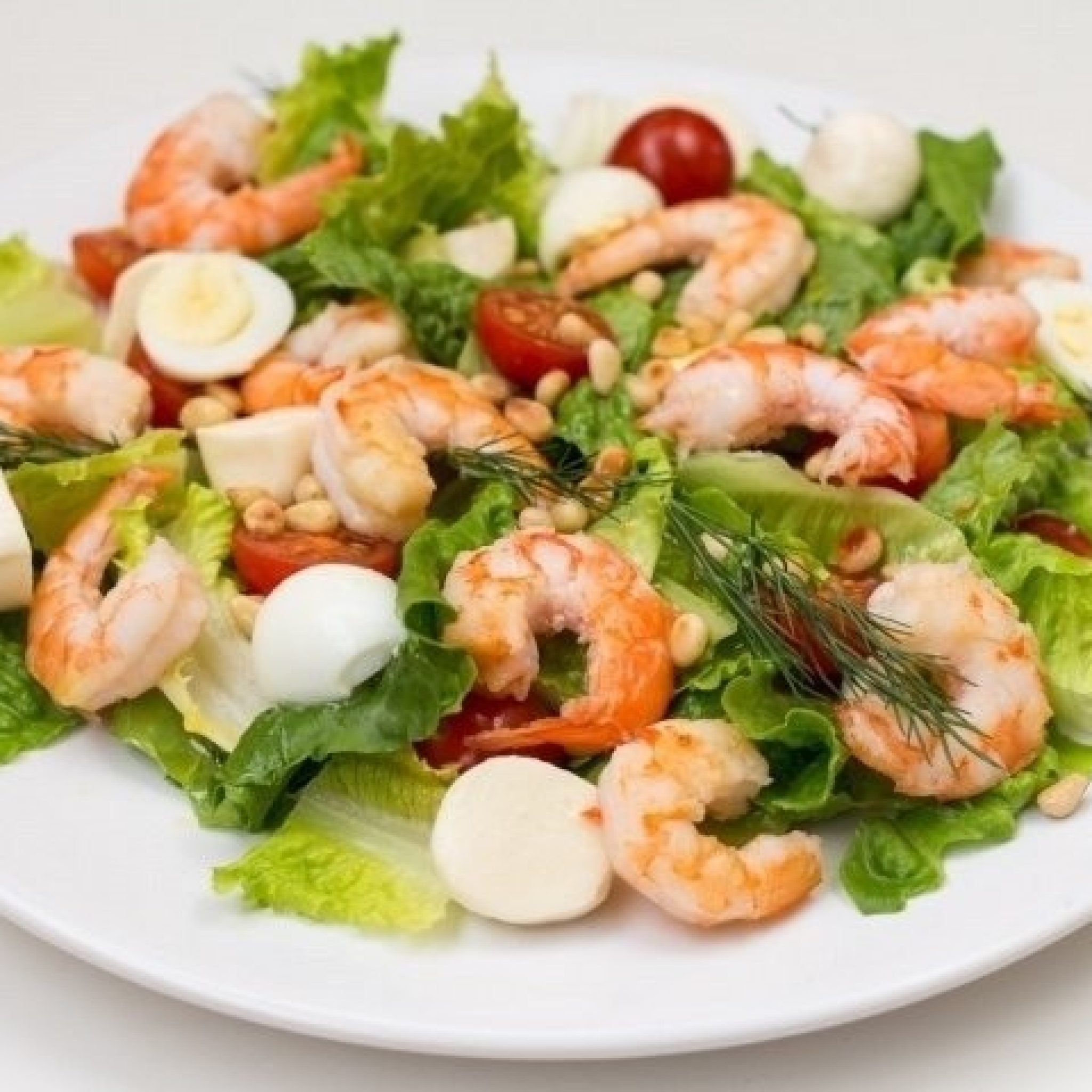 Салат с моцареллой черри и перепелиными яйцами