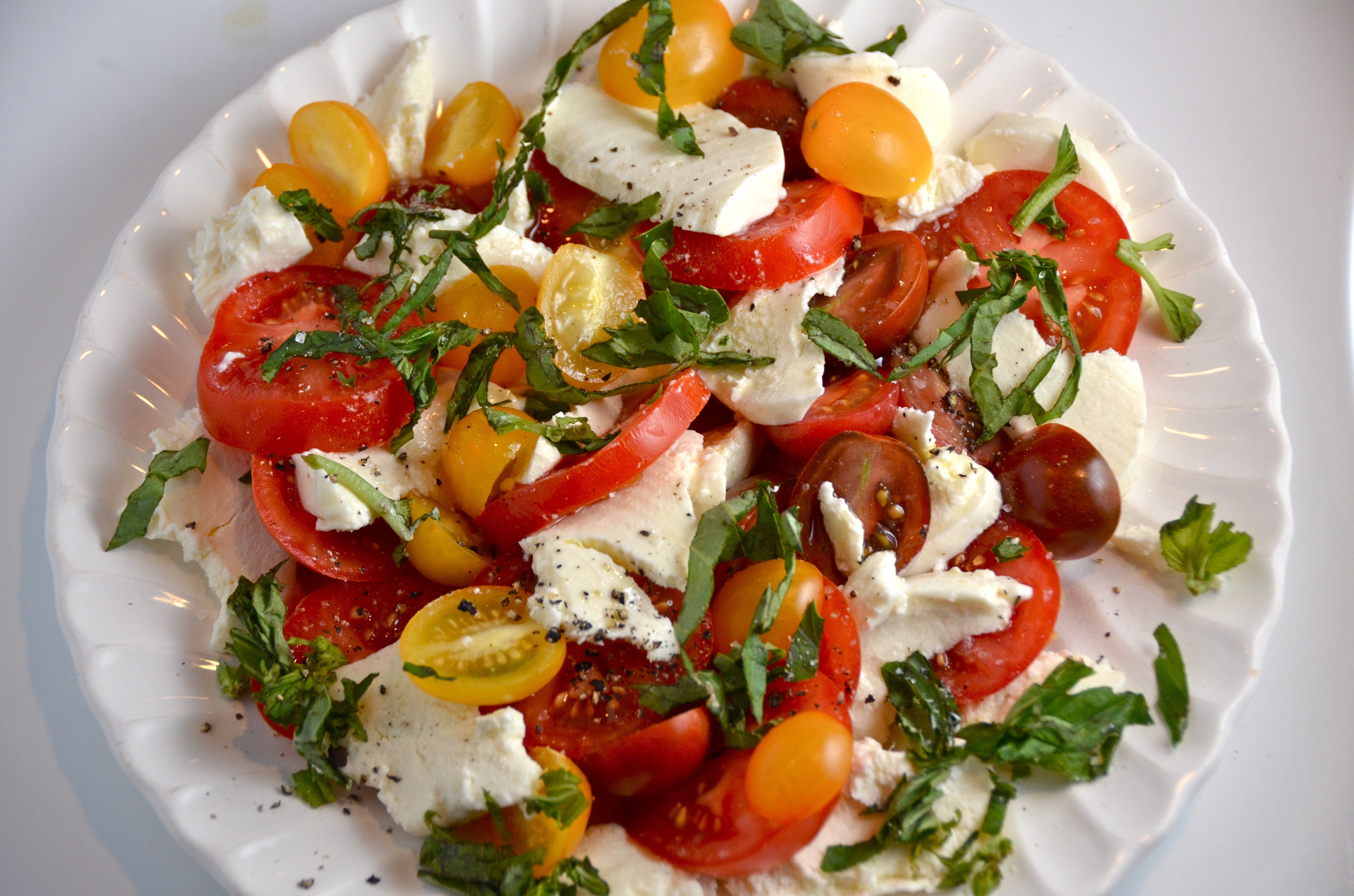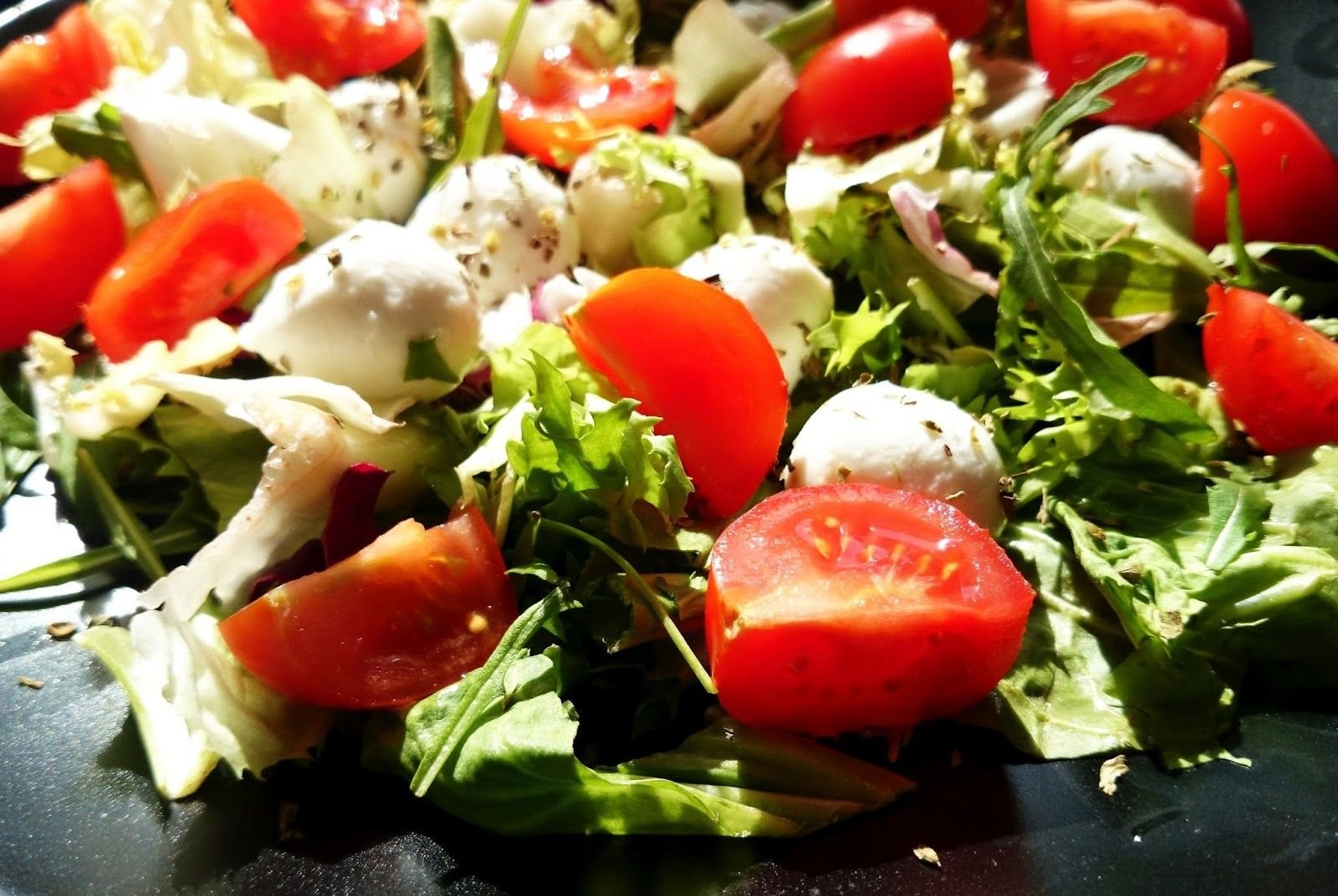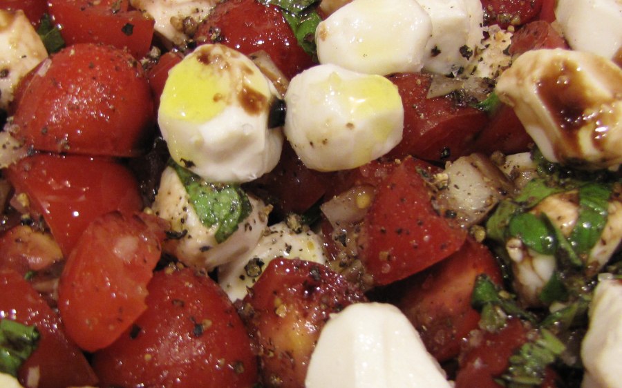 Салат с моцареллой и томатами черри