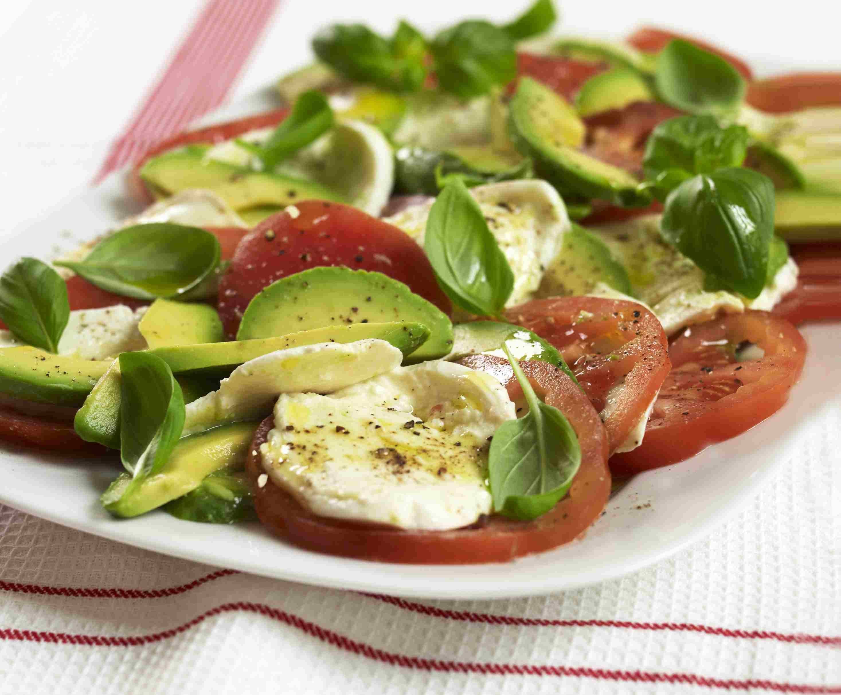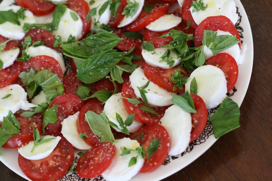 Салат помидоры с моцареллой и базиликом