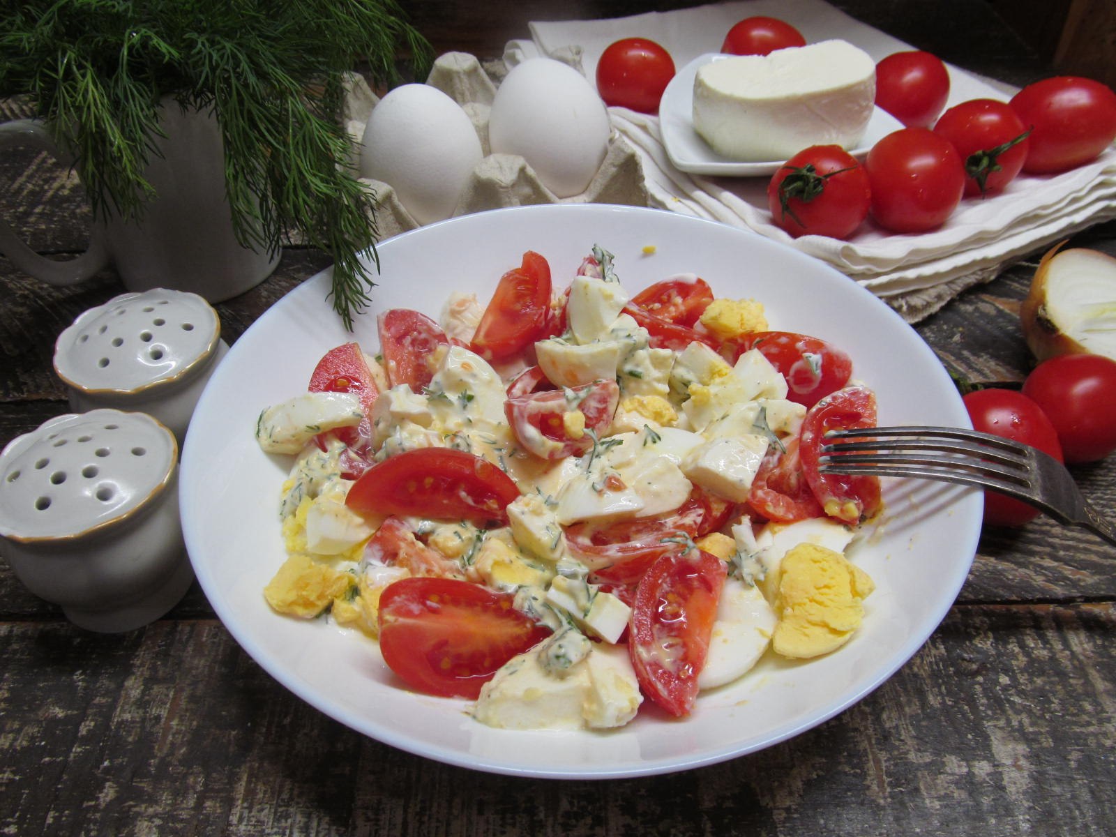 Салат с моцареллой с яйцом и помидорами