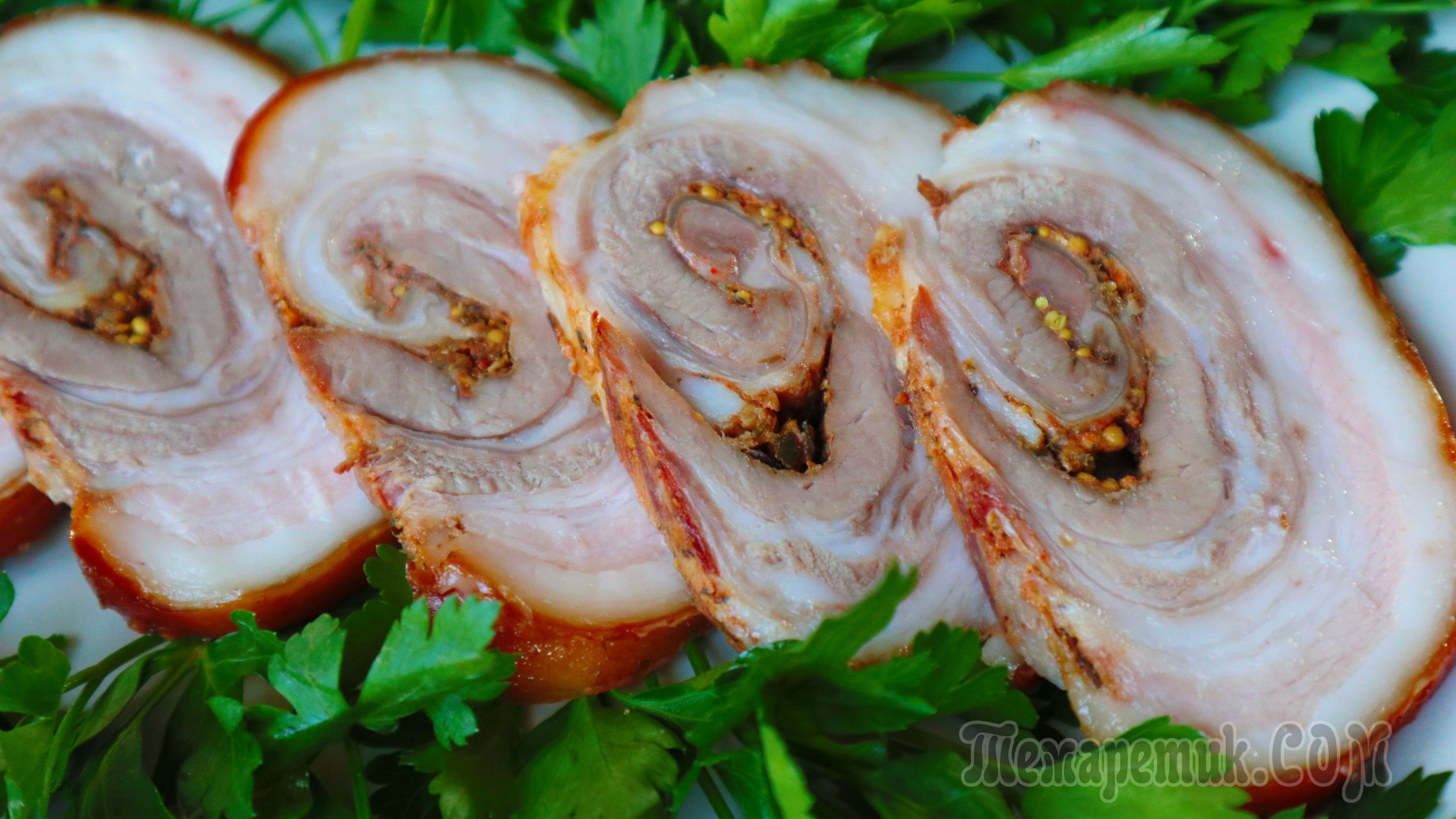 Рулет фаршированный из грудинки