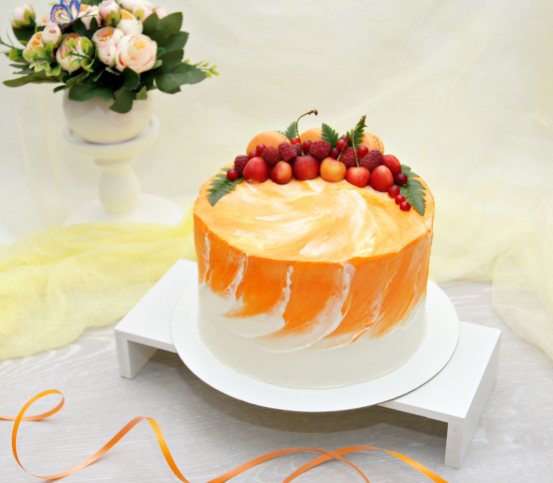 Персиковый торт украшение